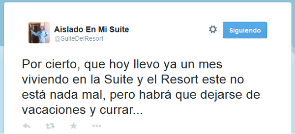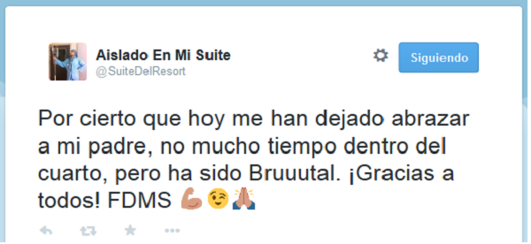la suite a la que se refiere se encuentra en el hospital La Fe de Valencia (España), donde ha permanecido aislado un mes, tras un trasplante de médula.